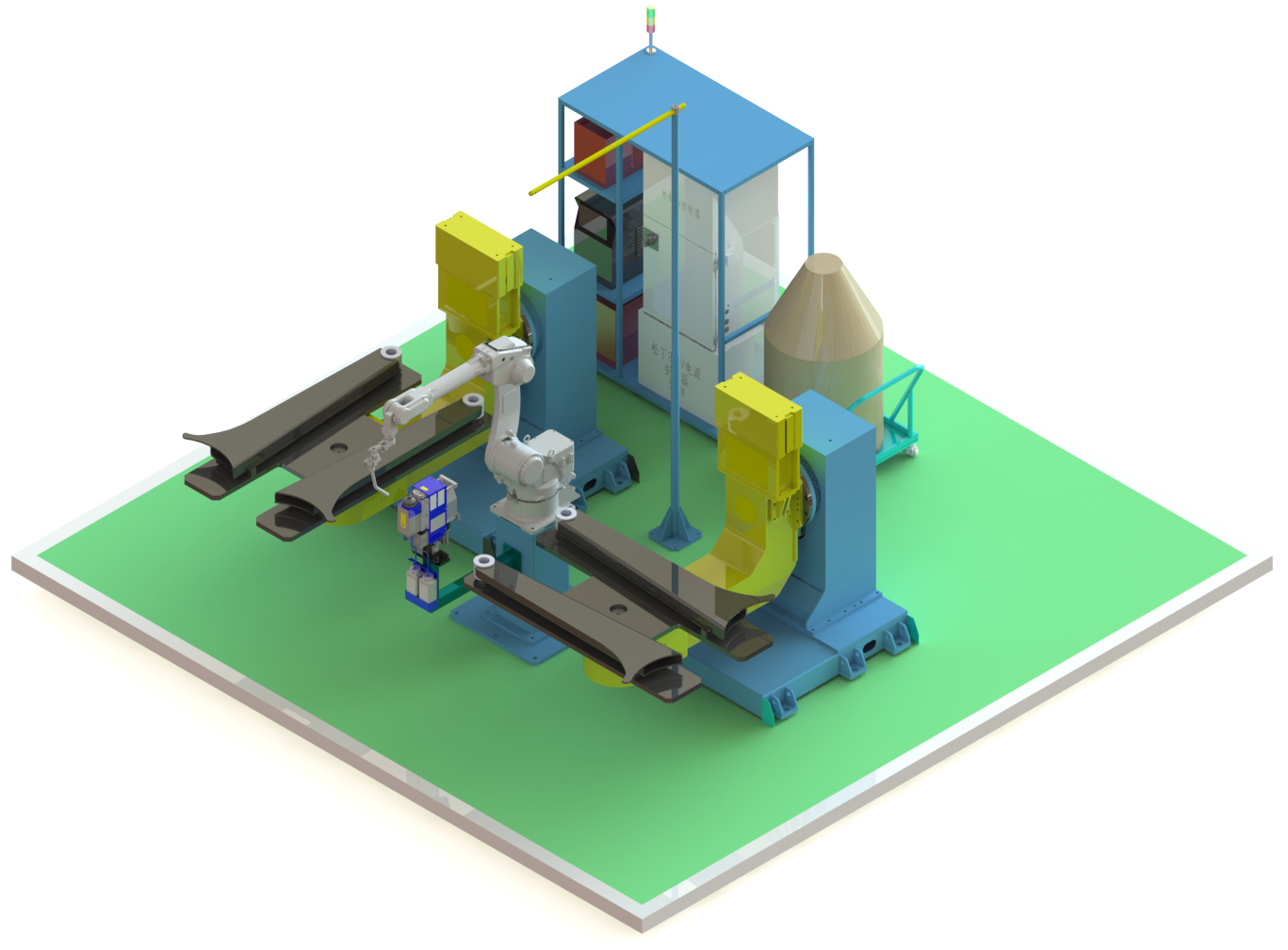 ?多功能適應(yīng):夾具設(shè)計(jì)考慮了多種型號(hào)工件的通用性,能夠適應(yīng)不同規(guī)格和形狀的推土鏟刀,提高了工作站的柔性。